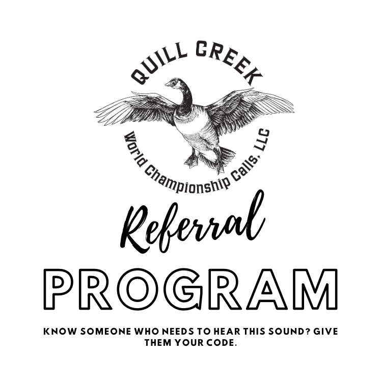 Your call is only as sharp as its tuning — and with this exclusive bonus, it’ll never fall flat. As a Quill Creek owner, you get free lifetime retunes for your goose call. Whether it’s from heavy use, weather wear, or you're just chasing that perfect pitch, send it in and we’ll dial it back to championship sound — as many times as you need, for life.